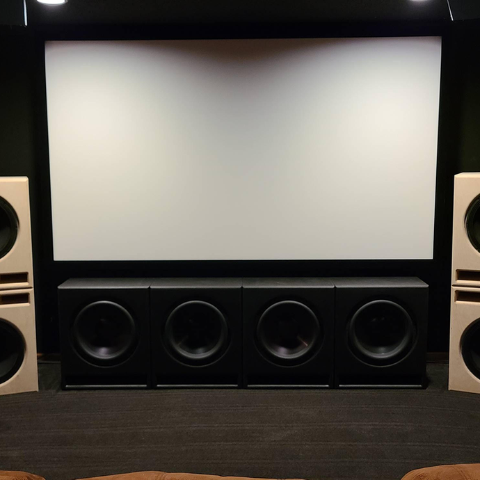 The output and extension I'm getting is impressive! My theater is also massive: 20”W x 32”L x 12”H and features 180” Elite screen, 4K Epson projector. The new GSG subs pressurize the room perfectly and effortlessly.