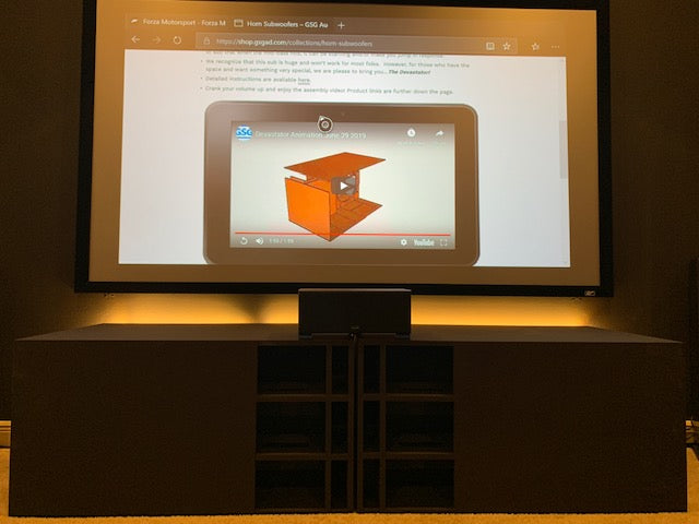 I was using three M&K MX-150THX subs but needed more. In my search for more I discovered GSG Audio and the mighty 21” Devastator. Fortunately, GSG is less than 10 miles from my home and a quick call to GSG started me on my journey. Kevin was incredibly helpful and led me through everything I would need to complete the build. I picked up the flatpack and downloaded the instructions from the GSG website and it wasn’t long before I was incorporating a monster sub in my room. The build went super smooth with the numbered panels and clear instructions manual.