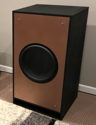 This was one of the first MartySubs that we created. It is finished with a flat black shell, a copper painted baffle, and stainless steel hardware. The driver is a Dayton UM-18.